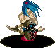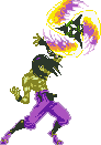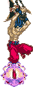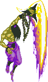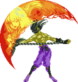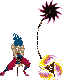 | 对空效果绝对没话说。A/B/C键出招飞行弧度依次增大。此招被防住以后收招很快,对骸罗而言是一个毁灭性的牵制攻击……这个就不像修罗那样CD>B影缝不管多远多近就直接连了,一般只能CDB〉A地刺,连起来也很麻烦。B/C出招刀刚转回来的一段依然有攻击性,对战容易忽视。一般,他的刀从头顶飞过以后就尽早往前冲攻击就行了。一般比较方便的办法就是用远B等手段来引对手跳跃,然后用这个对空。这个对空也主要是近身和超远程(对手中距离后跳逃走)用,敌人中距离跳跃还有下蹲远C来打一般还是用不到地刺。 | ![]() |
